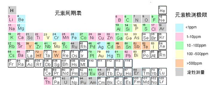 對(duì)LIBS系統(tǒng)進(jìn)行定標(biāo)后就可以對(duì)基體材料中的微量元素進(jìn)行定量分析,比如分析鋼材中的鉻、鋁合金中的鎂、玻璃中的鐵、硫酸銅中的銅等。定標(biāo)時(shí)要使用經(jīng)過(guò)鑒定的樣品材料,這個(gè)樣品材料與被測(cè)材料具有相同的基體,但含有不同含量的被分析元素。在分析時(shí)通常采用所謂的“內(nèi)部標(biāo)準(zhǔn)化”的過(guò)程,即把被分析元素的譜線強(qiáng)度和基體材料的譜線強(qiáng)度進(jìn)行比較,這樣就可以減少由于激光的脈沖能量不一致性所導(dǎo)致的等離子體條件變化對(duì)測(cè)量結(jié)果的影響。要想得到好的分析結(jié)果就要對(duì)LIBS的硬件進(jìn)行仔細(xì)的設(shè)計(jì)并采用合適的測(cè)量方法。LIBS系統(tǒng)測(cè)量的靈敏度與許多因素有關(guān):被分析物和基體材料的結(jié)合方式, LIBS系統(tǒng)和被測(cè)樣品的距離,以及是否需要遙測(cè)等。LIBS系統(tǒng)測(cè)量結(jié)果的正確性可優(yōu)于10% ,精度可優(yōu)于5%。不同元素的典型檢測(cè)限請(qǐng)參閱下面的元素周期表。