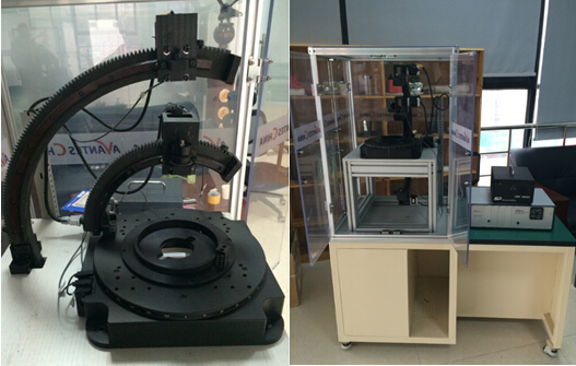 雙向反射分布函數(shù)(Bidirectional Reflectance Distribution Function)表示了不同入射角條件下物體表面在任意觀測角的反射特性,對于研究物質、材料的基礎物理特性和應用前景有著重要的意義。但是這一分布函數(shù)的測量存在著角度定位精度要求高,測量點多,測試數(shù)據(jù)量大的難點,單純由手動操作難以完成。荷蘭Avantes公司研發(fā)了雙向反射分布函數(shù)測量系統(tǒng),集成大功率鹵鎢燈照明系統(tǒng)、雙通道光纖光譜儀探測系統(tǒng)、測量機械系統(tǒng)和控制系統(tǒng)。
