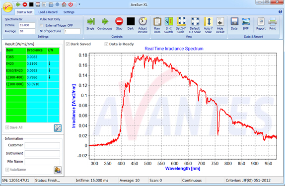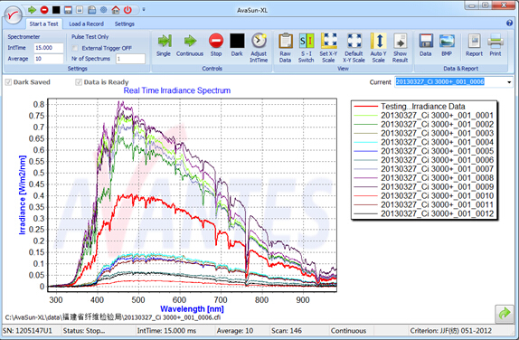 此外,您還可以根據(jù)特定的測(cè)試需求指定需要測(cè)試的光譜輻照度和累計(jì)輻照度
