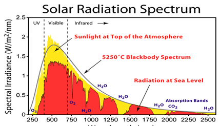 太陽(yáng)光譜輻照測(cè)量應(yīng)用包括科學(xué)氣象、氣候觀測(cè)、材料測(cè)試研究,太陽(yáng)能電池板效率和太陽(yáng)能可再生能源的評(píng)價(jià)等。在大氣層外,太陽(yáng)光譜可以看作為全波段的電磁波譜,但是在地表,由于大氣環(huán)境的影響,太陽(yáng)光譜會(huì)存在很多特征,也正是基于此,戶外太陽(yáng)光譜的監(jiān)測(cè)越來(lái)越多的被用于獲得太陽(yáng)的發(fā)光特性,了解光在大氣中的傳輸規(guī)律,以實(shí)現(xiàn)對(duì)大氣組分的監(jiān)測(cè)。