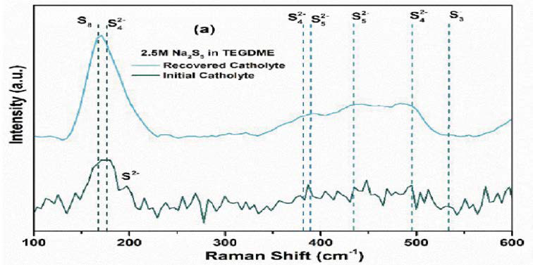 Kandhasamy等人在他們最近發(fā)表的題為“提高中溫鈉硫(IT-NaS)電池的性能和長期可循環(huán)性的運行策略2”文章中解釋說:盡管目前世界上最大的電池存儲單元采用了NaS電池技術(shù),但由于需要極高的運行溫度(約350°C),因此并未得到廣泛采用。 同時已經(jīng)觀測到這個高溫使實驗室的室溫發(fā)生了變化,這些設(shè)備仍受到陰極腐蝕和陽極結(jié)晶的困擾,從而導(dǎo)致性能下降和壽命縮短。 因此該團隊研究了可以在150°C以下安全運行的IT-NaS電池設(shè)計,初步結(jié)果表明在許多方面都有希望,無論小型還是大型電池其放電容量都遠(yuǎn)低于理論極限。隨著進(jìn)一步研究,他們觀察到僅經(jīng)過一個充放電循環(huán)后,IT-NaS電池的內(nèi)阻便顯著增加,這表明陰極附近的電解質(zhì)(稱為陰極電解質(zhì))發(fā)生了不可逆的降解。由于拉曼光譜對應(yīng)于分子鍵的振動頻率,因此它特別適合研究同素異形體。因此研究小組決定使用Avantes公司的AvaRaman-532 TEC拉曼光譜儀測量初始和回收的陰極電解質(zhì)?;趫D1所示的結(jié)果,通過175cm-1拉曼信號強度的增加可以很明顯地看出硫(S)正在發(fā)生化學(xué)變化。通過將拉曼光譜峰與已知的硫(S)譜段進(jìn)行擬合,他們斷定拉曼峰值的增加是由于絕緣S8的增加和活性S4的減少,進(jìn)而證明了拉曼光譜法對同素異形體具有很高的特異性。憑借著拉曼光譜學(xué)提供的光譜數(shù)據(jù),研究團隊探索了很多優(yōu)化方法,包括稀釋陰極液濃度和減小陰極液層次。最終,研究人員研制出了具有增強型長期性能,良好穩(wěn)定性和開創(chuàng)性的平均總電池能量效率(73±4%)的電池。